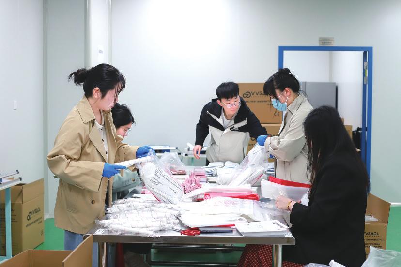 江苏紫龙药业有限公司结合国际化订单业务,开展Maama Kit 极速包装赛。参赛班组需在30分钟内完成80件“妈妈包”的包装任务,既比拼速度,又考验质量。比赛一开始,现场气氛紧张而热烈,参赛员工全神贯注,手法娴熟,各种动作一气呵成。员工们用精湛的技艺展现勇于挑战的风采。