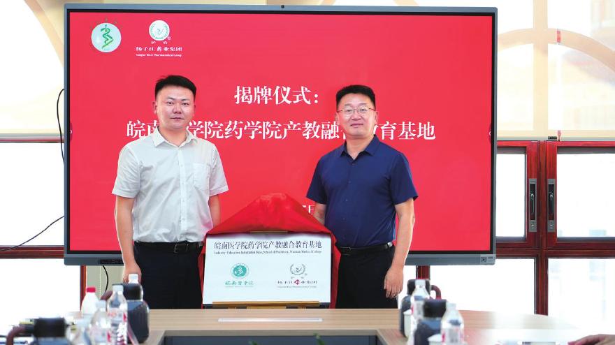 会上,封留才与韩永升共同签署《皖南大健康产业联合开发合作协议书》;安徽山水医药有限公司总经理助理王晓祥与皖南医学院药学院院长汪舰共同为“皖南医学院药学院产教融合教育基地”揭牌。