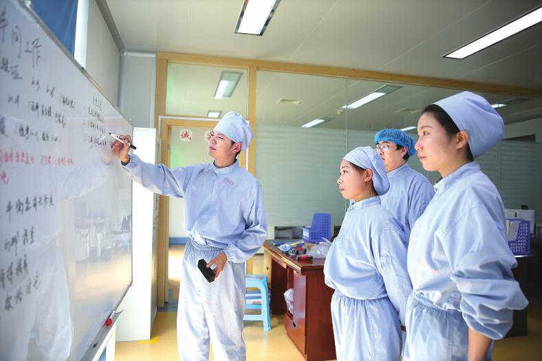小组成员们头脑风暴、集思广益,对A品种在生产全过程中杂质升高的影响因素进行排查。在确定配制液pH 值是影响杂质含量的要因时,冻干制剂配制液的不稳定性,给排查提升了难度。为此,他们查阅大量国外文献,与专业人士沟通,前后做了三十多次实验。一个冻干周期就需要花上二十多个小时,在这漫长的等待中,最终从三百多条数据中找到症结所在。