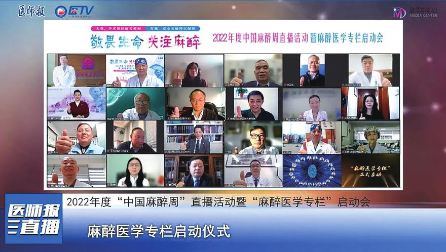 4月2日,由《医师报》主办,扬子江药业集团独家协办的2022年度“中国麻醉周”直播活动暨“麻醉医学专栏”启动会在线上召开。大会设置了致辞、专栏启动、“敬畏生命、关注麻醉”课题分享、圆桌讨论、总结等多个环节。这个被称为麻醉学界“G20峰会”的线上会议,共吸引了20余位知名麻醉领域专家参与,12家媒体与平台110万观众在线互动和观看。