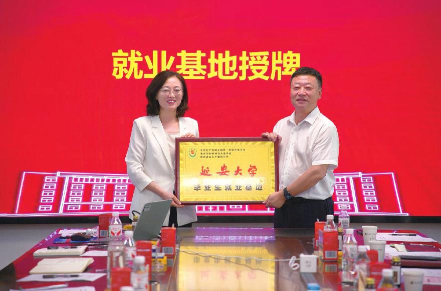 在与会人员的共同见证下,集团与延安医学院签署合作框架协议,延安医学院院长杨彦玲为蔡伟颁发兼职教授聘书,并向扬子江药业集团授予延安大学毕业生就业基地牌匾。
