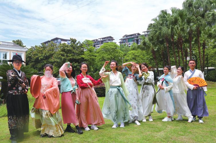 “罗衣何飘飘,轻裾随风还。”一群衣袂飘飘的汉服仙子身着各种形制的汉服,或华丽,或飘逸,或俊朗,出现在四川海蓉端午游园活动现场,为端午佳节增添了国风古韵。