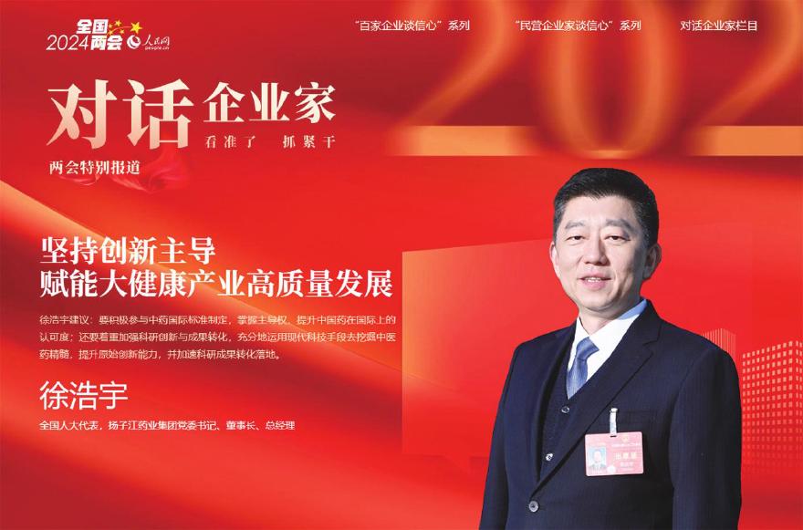 “企业作为创新主体,需要积极推动科技和产业创新,尤其要在关键核心技术上铆足劲儿,这是新质生产力的源头活水。”近日,全国人大代表,扬子江药业集团党委书记、董事长、总经理徐浩宇在做客人民网《对话企业家》两会特别节目时介绍。