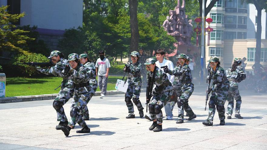 “我心飞扬”大学生集训营基础战术特色表演分队闪亮登场,他们带来了为“八一”献礼的战术表演,精彩的表演赢得阵阵掌声和欢呼声。