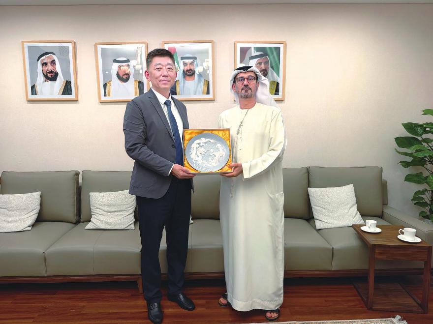 会谈中,徐浩宇系统地介绍了扬子江药业集团的发展历程、核心产业布局以及产品优势,着重分享了集团在中医药现代化、中医药文化传播以及大健康领域深耕探索等方面所取得的进展。哈马迪大使对这些领域表现出了高度关注,他特别提及了阿联酋及周边中东地区对健康产品的需求趋势。他说,目前当地市场对美容养颜、体重管理、“三高”调理类天然健康产品的需求正持续攀升,期待与中国企业加强合作。