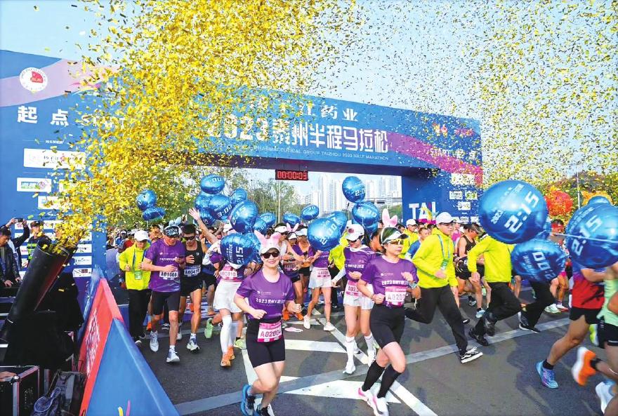 10月15日上午8时,来自世界各地的马拉松跑者齐聚江苏泰州体育公园,备受期待的首届扬子江药业2023泰州半程马拉松赛(简称“泰马”)正式开跑。