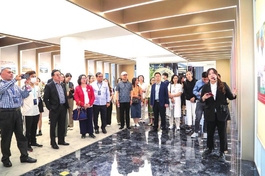 来自老挝、印度尼西亚、越南、尼泊尔等国家的参访团成员,饶有兴致地参观了龙凤堂中药展览馆,聆听了集团对中药材从前处理到提取的智能化生产探索,通过现场体验“望”“闻”道地中药材,观看中药制作过程,亲身感受中医药文化与现代制药技术结合的无穷魅力。