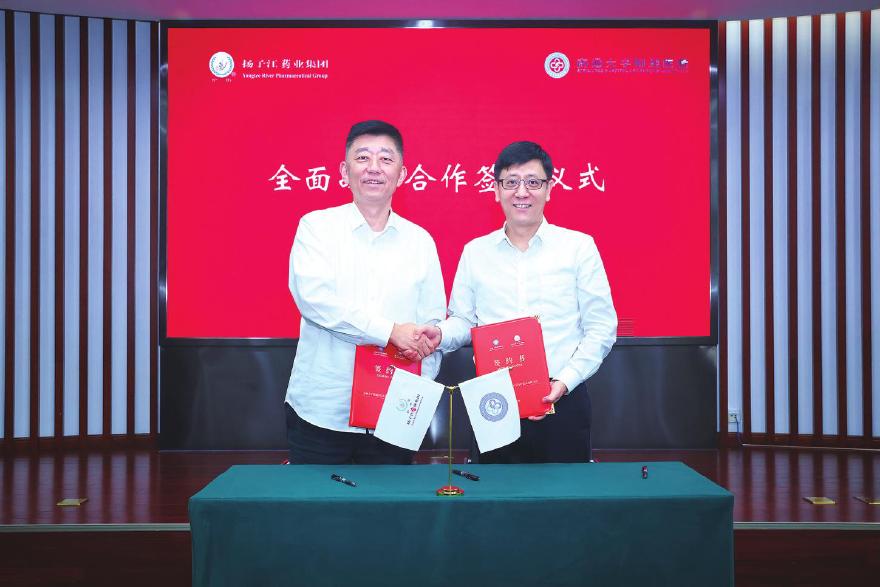 9月2日,扬子江药业集团与广东药科大学附属第一医院战略合作签约仪式暨座谈会在集团总部举行。广东药科大学附属第一医院党委副书记、院长许典双,扬子江药业集团党委书记、董事长、总裁徐浩宇出席活动并讲话。