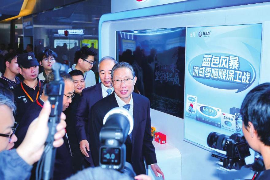 现场,集团的“蓝色风暴”特装展台对旗下蓝芩系列产品进行集中展示,得到钟南山院士、张伯礼院士的积极评价。