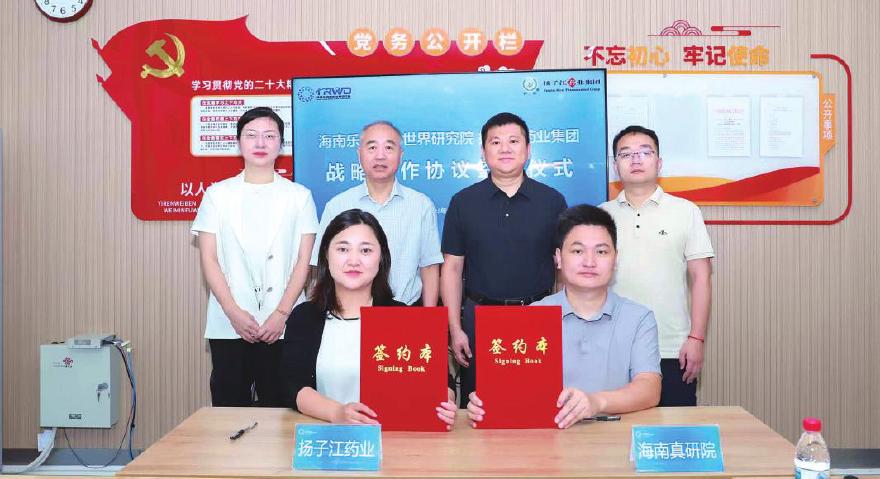 8月26日,扬子江药业集团与海南乐城真实世界研究院(以下简称海南真研院)举行签约仪式。海南博鳌乐城先行区管理局副局长、海南真研院副院长廖敬乐,扬子江药业集团市场部负责人谷成明出席签约仪式,共同见证签约。海南真研院秘书长代晓龙与集团市场部中药产品中心副总监裴帅代表双方签署协议。