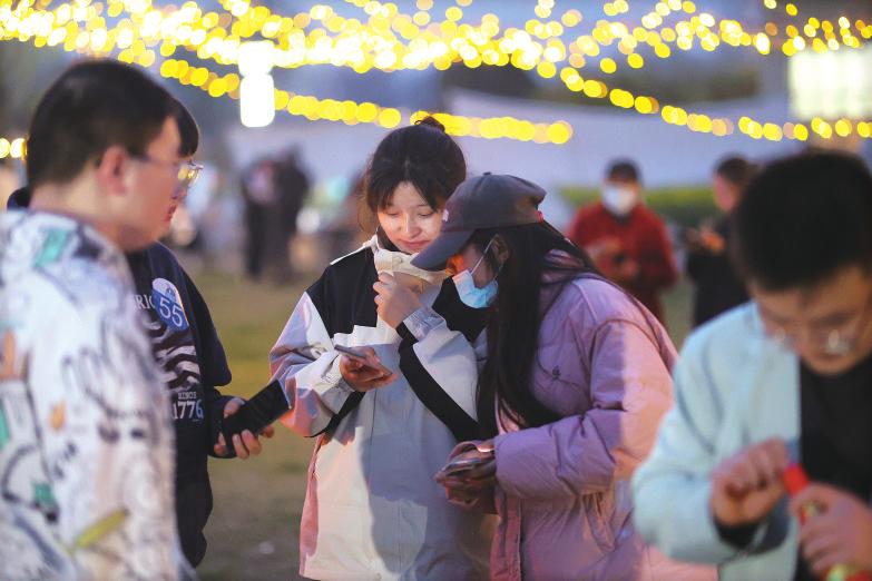 “右边是障碍气球,踩!前面是鲜花,要捡起来!”女生现场指挥、男生蒙眼行动,组队的青年男女在互帮互助中不断拉进距离,通过“默契配合”“甜蜜速递”等互动环节,默契升温,现场气氛热烈、笑声不断。