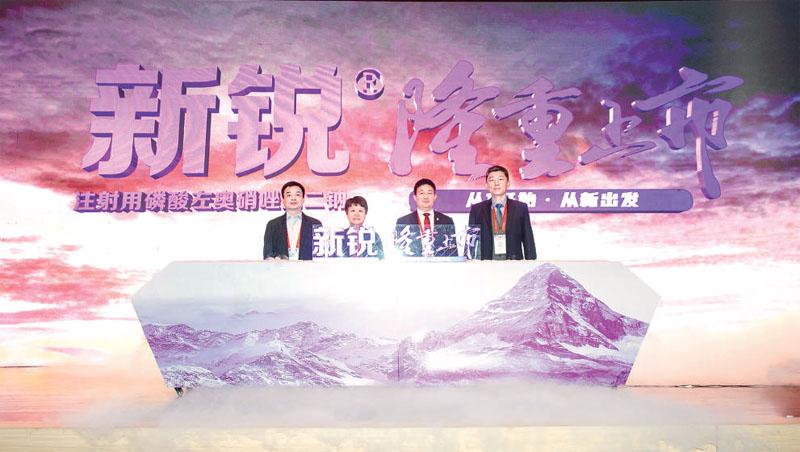 大会主席郑州大学第一附属医院赵杰教授,特邀嘉宾同济大学附属第十人民医院沈甫明教授,特邀讲者复旦大学附属华山医院郭蓓宁教授,扬子江药业集团董事长徐浩宇等出席,与来自全国各地的450名专家学者共同见证了新锐上市。