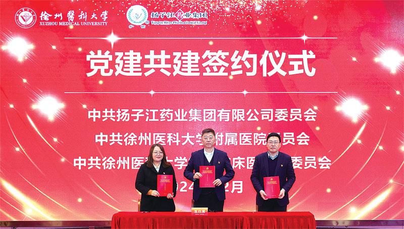 颁奖仪式后,徐医附院党委、徐州医科大学第一临床医学院党委与扬子江药业集团党委共同签订了党建共建协议书,旨在进一步探索创新党建工作模式,提高党建工作水平。