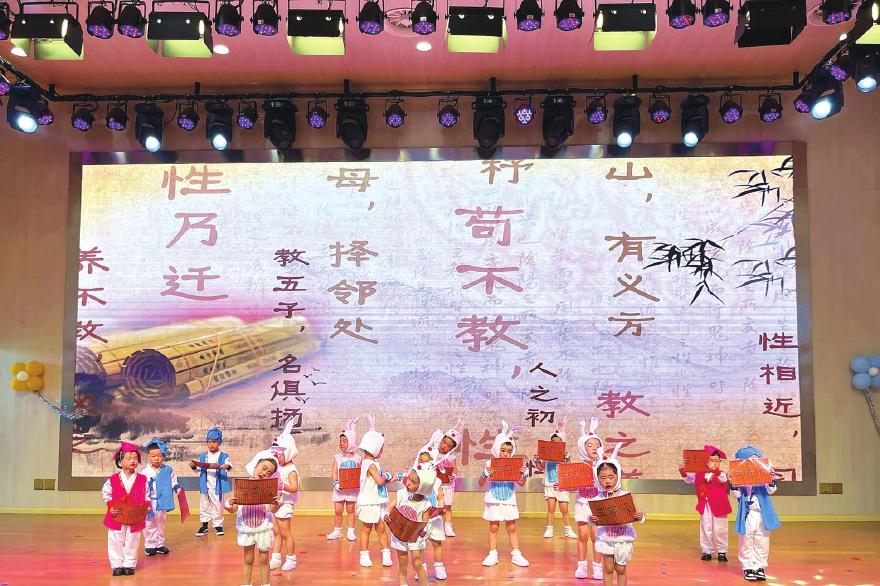 活动现场,一个个金灿灿的“向日葵”在台上盛开,让大家直呼“可爱”,奥特曼父子、海绵宝宝与派大星齐齐上阵,别出心裁……稚嫩的童声、娴熟的舞姿、专注的表演,留下了美好的节日回忆。