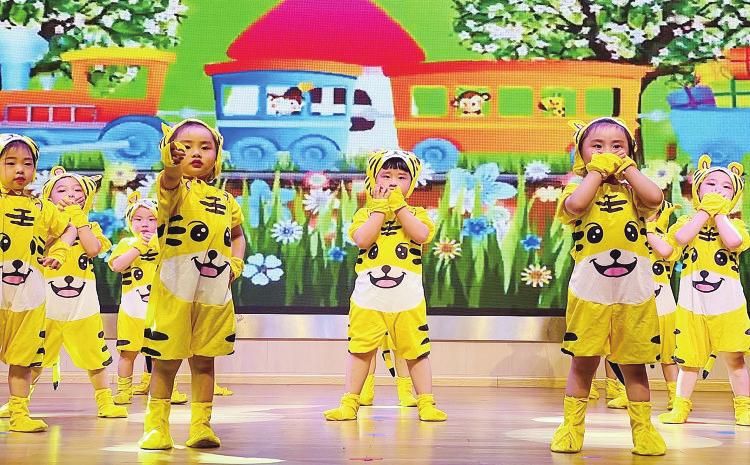 动感的气息,欢乐的节奏,燃烧的激情扑面而来,托一班一首《青春舞曲》点燃全场。台上一群“小老虎”蹦蹦跳跳,格外活泼,小二班的节目《糖果屋里的小老虎》引得线上线下的观众直呼“可爱”。小五班、中三班带来的《国学礼赞》和《小道童》两个节目,身着古风汉服,一举一动尽显文士风流……精彩的演出给家长和孩子们都留下了特别的节日回忆。(尚德智幼儿园 丁佳昕)