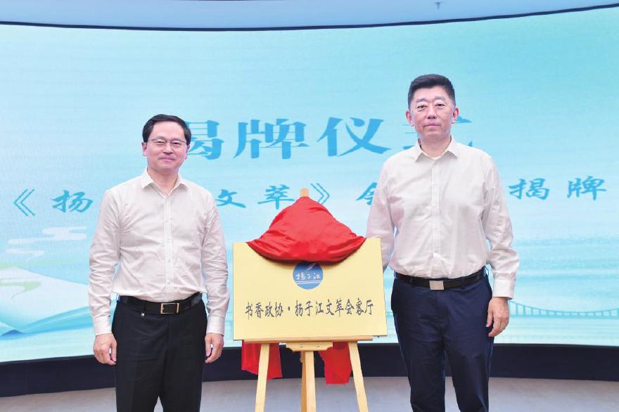泰州医药高新区党工委副书记、管委会主任,高港区委副书记、区长丁志强,扬子江药业集团党委书记、董事长、总裁徐浩宇共同为“扬子江文萃会客厅”揭牌;泰州市社科联主席朱莹,泰州高港区政协主席薛永忠共同为“讲好中国故事高新高港实践研究点”揭牌,这是“扬子江文萃”在助推地方文化建设中迈出的新步伐。