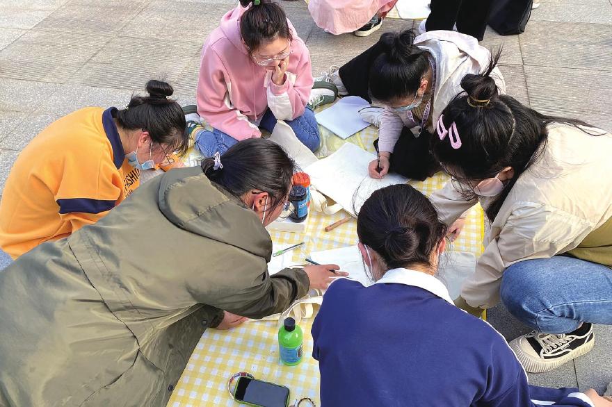 活动现场,指导老师详细介绍了彩绘帆布包的色彩搭配、涂鸦技巧、上色要领、注意事项等。大家充分发挥想象力、创造力,构思自己喜爱的图案,耐心勾画底稿,调制颜色、构图、上色,在帆布包上精心设计、小心涂抹。经过半个多小时的努力,一个个鲜活的图案跃然眼前,既有生动可爱的卡通形象,又有契合环保主题的绿水青山,色彩丰富、创意十足。