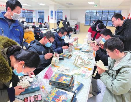 在江苏常州,紫龙药业食堂里一串串红灯笼高高挂起,一条条灯谜吸引了员工驻足,猜出灯谜的员工还能领取一份糖果盲盒,甜甜蜜蜜过元宵佳节。在花灯DIY 窗口,员工们聚精会神,心无旁骛用巧手制作出一个个独特又喜庆小兔子花灯,成就感满满。除此之外,智力与娱乐火花碰撞的掼蛋比赛现场也是热闹非凡,大家你来我往,四处洋溢着节日的欢乐气息。