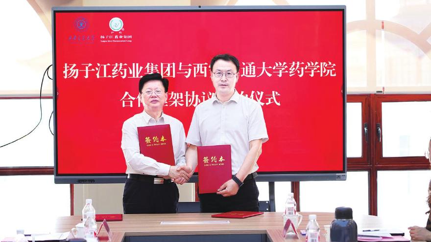 在与会嘉宾的共同见证下,封留才与张彦民共同签署了《西安交通大学药学院与扬子江药业集团合作框架协议》。