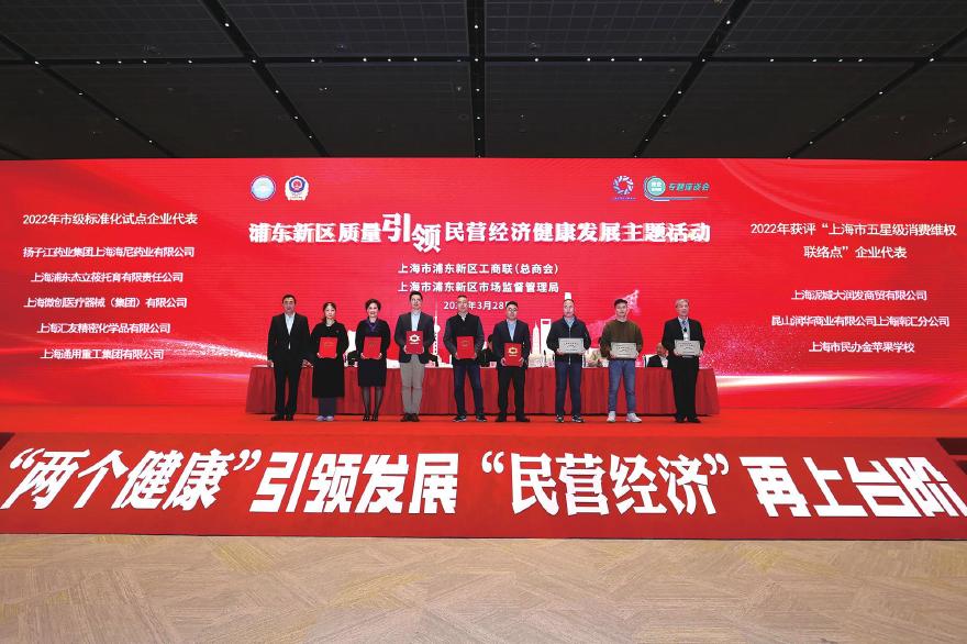3月28日,上海浦东新区工商联与区市场监管局在张江科学会堂共同举办“‘两个健康’引领发展,‘民营经济’再上台阶浦东新区质量引领民营经济健康发展”主题活动。会上,集团旗下上海海尼,以及其他7家企业获评“2022年市级标准化试点企业”。