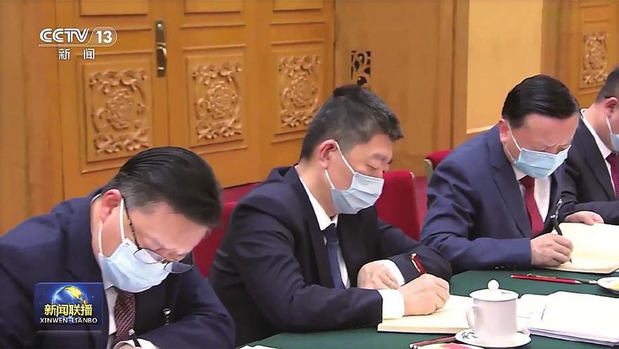 3月5日,第十四届全国人民代表大会第一次会议在北京人民大会堂开幕。图为江苏代表团举行小组会议现场,新闻联播特写镜头画面。