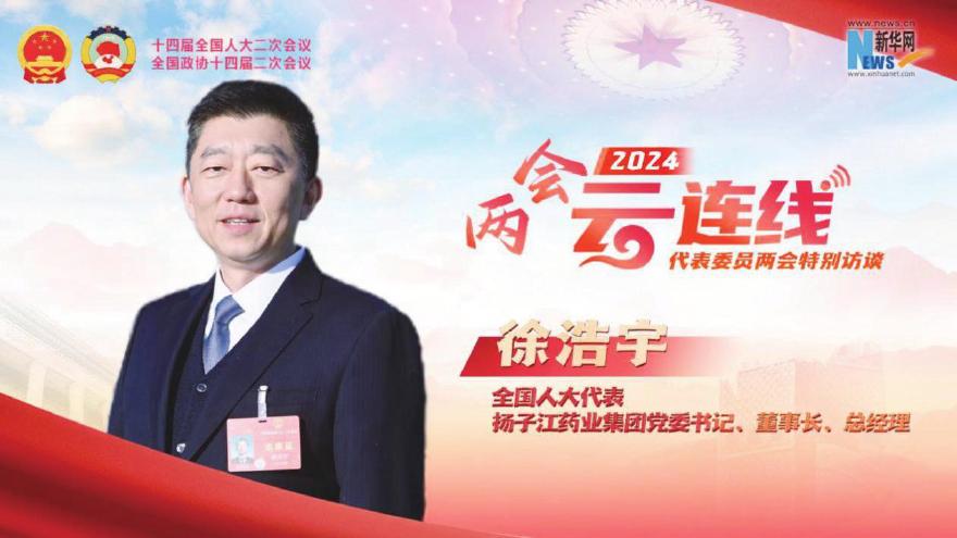 阳春三月,春风拂面,举世瞩目的2024年全国两会胜利召开。全国人大代表,扬子江药业集团党委书记、董事长、总经理徐浩宇出席十四届全国人大二次会议,积极履职尽责,参与建言献策,助力健康中国建设。两会期间,中央电视台、人民网、新华网等数十家媒体对徐浩宇代表履职情况进行报道,引起了各方广泛关注。本报精选了部分主流新闻媒体的宣传报道。