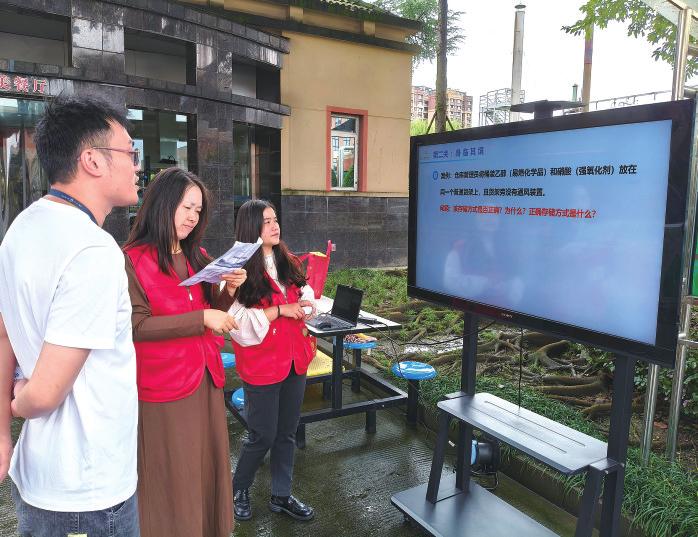 线上初赛依托“扬子江学堂”平台覆盖全体员工,考题涵盖EFQM 核心框架、企业文化、安全生产、药典知识、GMP 规范等领域,有效巩固和检验了理论基础。线下闯关设置“扬帆起航”“身临其境”和“险中求胜”三大区域,“扬帆起航”需答5道随机基础题,考验知识广度与扎实程度;“身临其境”环节由安全环保部基于实际工作场景设计情景题,强调知识运用与判断能力,突出“以赛促练、学用结合”;“险中求胜”则设置不同难度由员工自愿选择挑战,现场掌声与喝彩此起彼伏,充分激发了员工的学习热情。