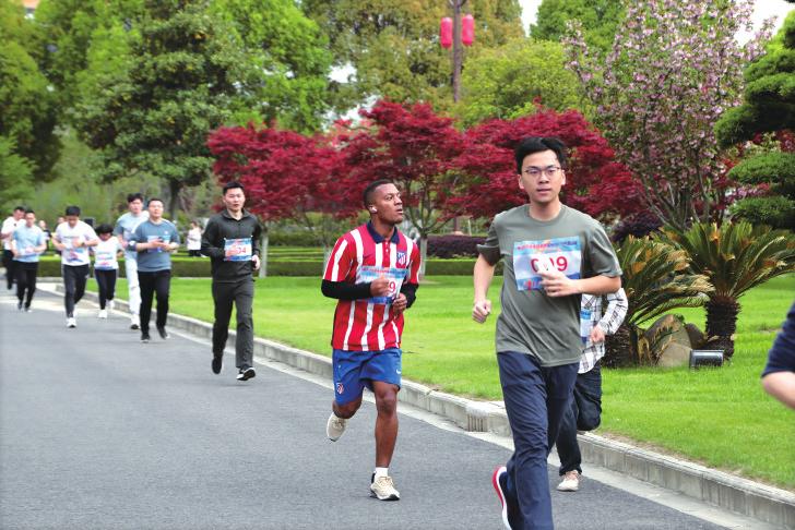 赛道上,不同肤色的参赛选手们健步如飞,他们相互鼓励加油、你追我赶,享受运动带来的激情与快乐,用矫健的身姿一展扬子江人挑战自我、超越极限的拼搏精神,长龙般的队伍在厂区形成一道亮丽的风景线。