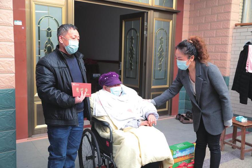 慰问组来到城南社区王艮女家中,了解到眼前这个身材瘦小老人的老伴已故,大孙女10年前不幸患白血病离世,自己也一直被肺癌折磨,频繁的手术和化疗几乎花光她家中所有积蓄,生活不堪重负,慰问人员向王艮女转达了集团深切的关怀与问候,劝慰她要保持乐观向好的态度,相信党和组织一定会带来希望,共同战胜病魔。