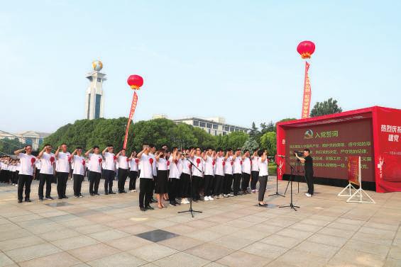 “我志愿加入共产党,拥护党的纲领,遵守党的章程,履行党的义务……”7月1日上午,在中国共产党成立100周年之际,扬子江药业集团党委在东方红广场召开庆“七一”入党宣誓暨表彰大会,蒲广磊等57名新发展党员和转正党员在领誓人的带领下,庄严宣誓。