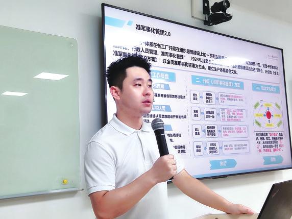 上半年,姜志宇对《生产体系工厂考评管理规定》进行升级,组织召开生产运营部绩效修订专题讨论会5场,确定2023年生产体系绩效整体方向,以合规为基础,绩效管理重点从供货、投诉模块调整至各项模块全面监管,初见成效。同时,将“扫除道”、军事训练、工匠传承室、“我为谁而存在”等多项文化建设工作,升级为《全员准军事化管理2.0方案》,构建特色管理文化。此外,开展了多次特色工厂长会议,融入军事训练、季度汇报、阿米巴专题汇报及培训等各个环节,为构建集团生产体系新生态不断努力。