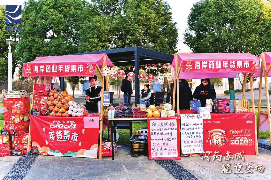 辞旧迎新时刻,海岸药业还推出年货团购集市活动,南北干货、卤味、咸货、苏州特产等应有尽有,一份份带有家乡味道的年货传递着脉脉温情,将浓厚的新春氛围感拉满。集市旁丰富的互动游戏,如桌上冰球、投篮、投壶、套圈、穿越火线等,吸引了众多员工参观体验,咨询选购者络绎不绝。