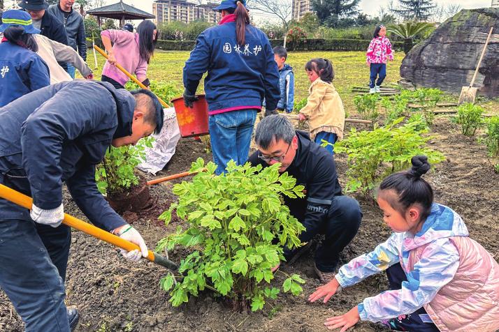 在四川海蓉工厂,“春暖花开播种希望”主题植树亲子活动吸引了员工代表和子女一同参与。在绿化养护专员的指导下,大家扶苗正苗、挥锹铲土、培实新土、拎桶浇水,认真细致种下一株株幼苗,现场一派热火朝天的劳动景象。信息部系统顾问周国军带着一双儿女为厂区添绿增美,让孩子亲手种下一棵树,切身感受到爱护环境、绿色环保的重要性。