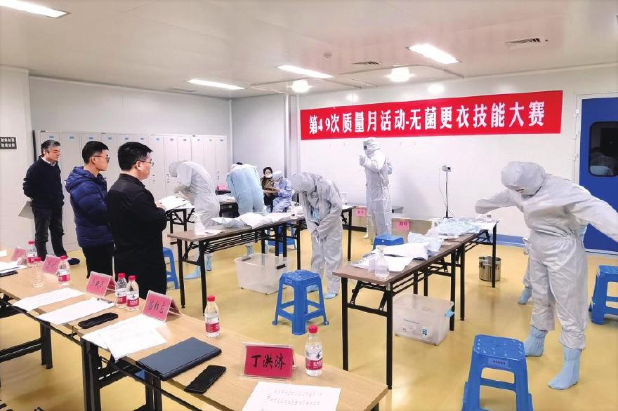 此外,各工厂也开展了形式多样的岗位大练兵。有限工厂举办无菌更衣竞赛,从最基础的消毒穿衣开始,锁定细节,不让无菌外衣受到一丝污染,化验室基础操作“大家来找茬”也以独特的形式引发了参赛人员的热烈讨论。江苏紫龙举办了化验员检验能力理论和实践大比拼,全员进行《药典》凡例、《化验员基本操作规程》考试,并从称量、移液、定容、滴定、计算等多个环节进行技能比武,还特别邀请常州市食品药品质量监督检验中心领导现场指导,为药品质量保驾护航。四川海蓉则聚焦制药行业生产质量管理过程最重要的环节之一——“清场”,组织开展“清场大作战”,查找清洁过程中的短板和弱项。