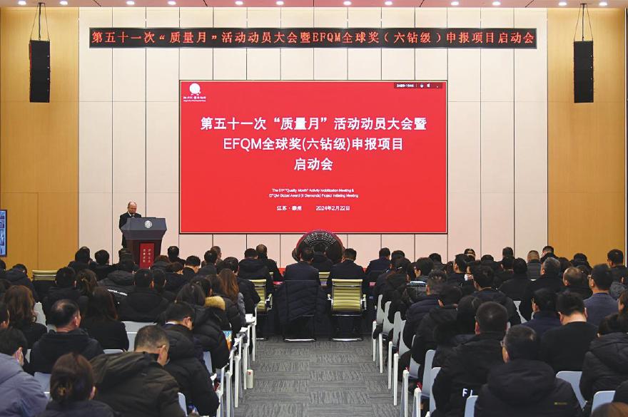 徐浩宇在致辞中表示,借助开展第五十一次“质量月”活动契机,启动EFQM 全球奖(六钻级)申报项目,是集团实施质量提升行动、勇攀质量高峰的一项重大举措。创奖不是目的,关键在于对标找差,持续学习和改进。要更加深入地应用EFQM 模型,发动全员参与,深度学习、苦练内功、补齐短板,全方位推动质量升级,力争通过3年的努力,冲刺EFQM 全球奖(六钻级),争当行业质量标杆,逐步把“扬子江品牌”打造成“世界品牌”。
