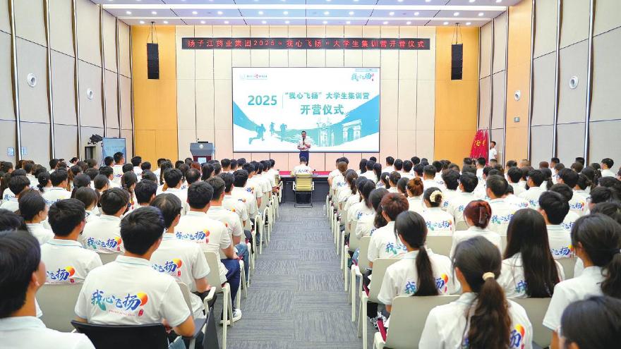 七月的扬子江,八方英才荟萃。7月24日,扬子江药业集团2025“我心飞扬”大学生集训营在总部扬子江学堂拉开序幕。来自全国各大高校的311名应届大学毕业生聚集一堂,在此开启人生职业生涯“第一课”。集团党委书记、董事长、总裁、集训营营长徐浩宇,扬子江学堂负责人、集训营教导员封留才,人力资源体系负责人李伟军,以及集训营教官、项目组成员出席开营仪式,共同见证这场属于青春与梦想的“出征礼”。