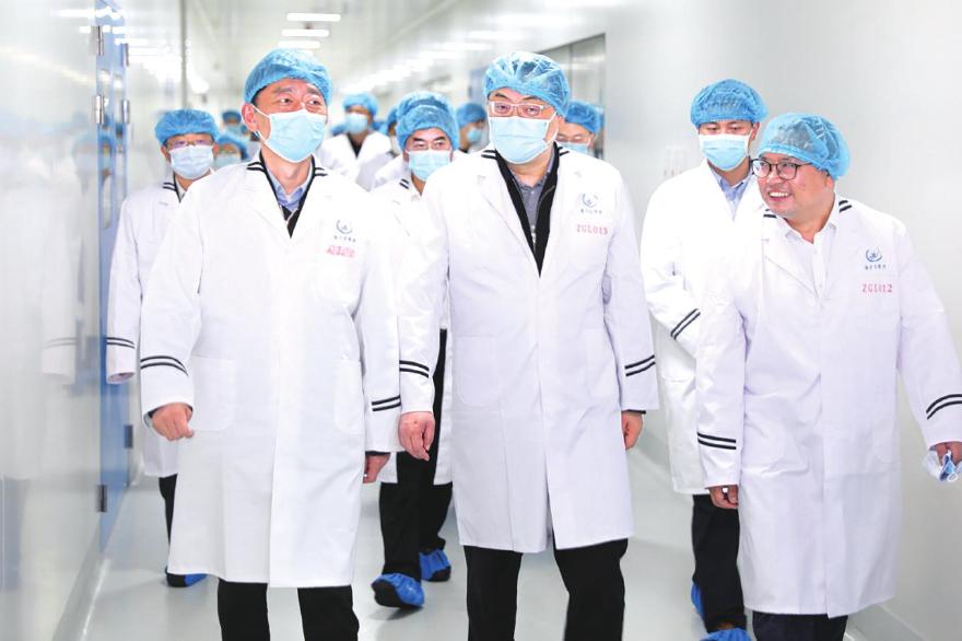 4月25日下午,泰州市委书记朱立凡来到扬子江药业集团,专题调研圣森生物制药(剂)项目建设情况。市、区领导徐克俭、叶冬华、陶旭、吴斌、顾为进参加活动,扬子江药业集团党委书记、董事长、总经理徐浩宇陪同调研。