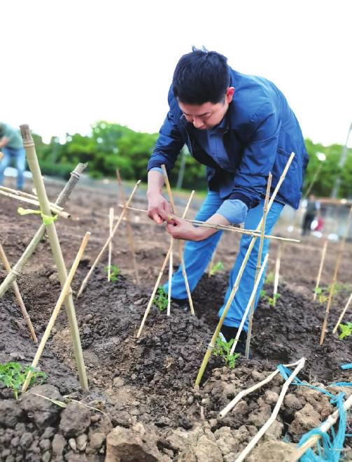 “放菜苗之前,要先把地膜下的土扒一下,与底肥拌匀,这样菜苗才不会被肥料烧根。”行政后勤部红锅师傅郭荣圣种菜经验丰富,在播种过程中,他教授了大家许多种菜技巧。松土、施肥、播种、浇水……大家相互配合着,经过一番努力,菜地披上了新装,大家也收获了满满的成就感。