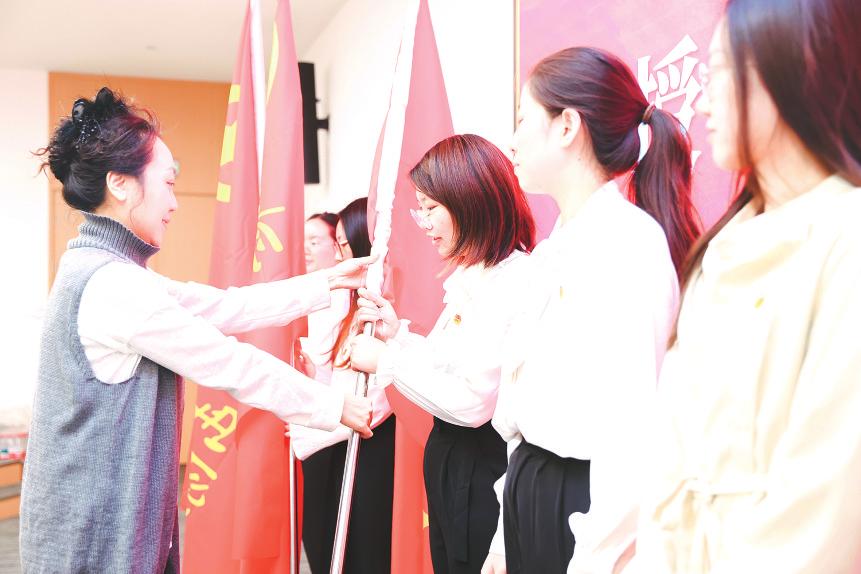 在激昂的音乐中,党工团办公室副经理尤丽、集团团委书记徐玉分别为各青年突击队授旗。队员们郑重接过队旗,它们象征使命与担当的传递,也标志着各突击队正式扛起攻坚重任,奔赴一线。