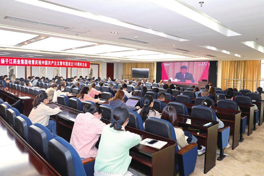 5月10日上午,庆祝中国共产主义青年团成立100周年大会在北京人民大会堂隆重举行。中共中央总书记、国家主席、中央军委主席习近平出席大会并发表重要讲话,为中国青年运动擘画新的未来,激励广大团员青年在实现中华民族伟大复兴中国梦的新征程上奋勇前进。扬子江药业集团广大团员青年通过“主会场+分会场”联动、“个人+集中”并行的方式,认真收听收看大会直播实况,纷纷表示要坚定信念、紧跟党走,以青春之我,贡献伟大时代。